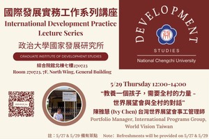 在糧食危機與氣候變遷交織的背景下,國立政治大學國家發展研究所於本月27日舉辦英文專題講座「Feeding the World: How International Aid Shapes Global Food Security(讓全世界有飯吃:國際援助如何形塑全球糧食安全),」由蘇昱璇老師主持,邀請台灣世界展望會事工管理師游松翰分享其在多國從事糧食與農業援助的第一線經驗,探討國際援助如何回應糧食安全的挑戰。